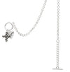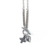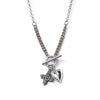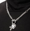A statement neck piece, featuring 2 combined styles of chain, a chunky t-bar clasp and 2 unique charms.